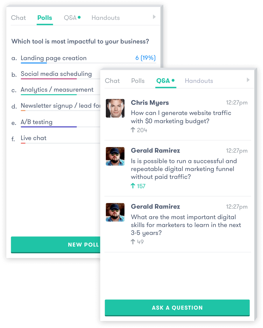 Attendees ask questions and upvote the best answers. Simply read off the list to include a Q&A session at the end of your webinar.